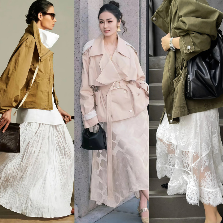 ★ A字裙+短风衣,和顺又有氛围感
