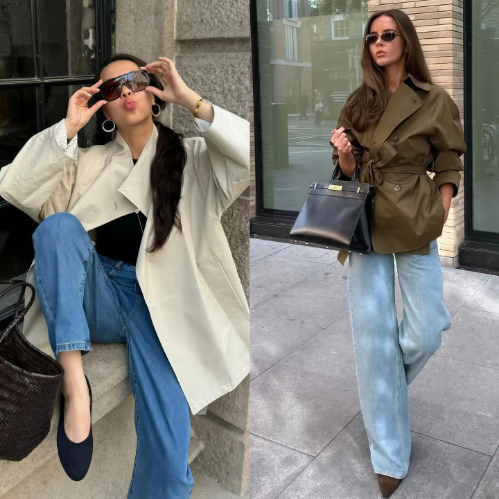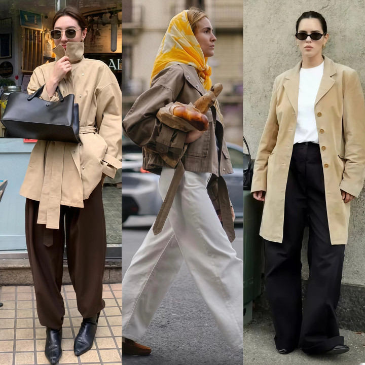 阔腿裤+短风衣是本年春天最值得尝试的组合之一,短风衣把上半身收得很精简,阔腿裤让下半身的线条宽松舒展,上窄下宽的比例让东谈主看着十分满足。