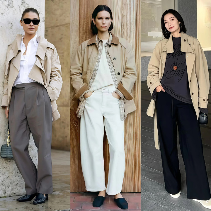 ★ 阔腿裤+短风衣,干练气质清静拿握